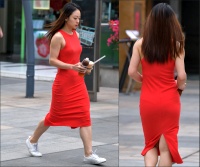 帖子描述✔:周末小丁①:匆匆跑过贴身红裹裙,粗狂丁字痕背影里显现[25P]